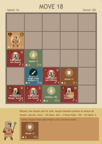 - Combine same items to create stronger versions—except potions, which may either buff or debuff.